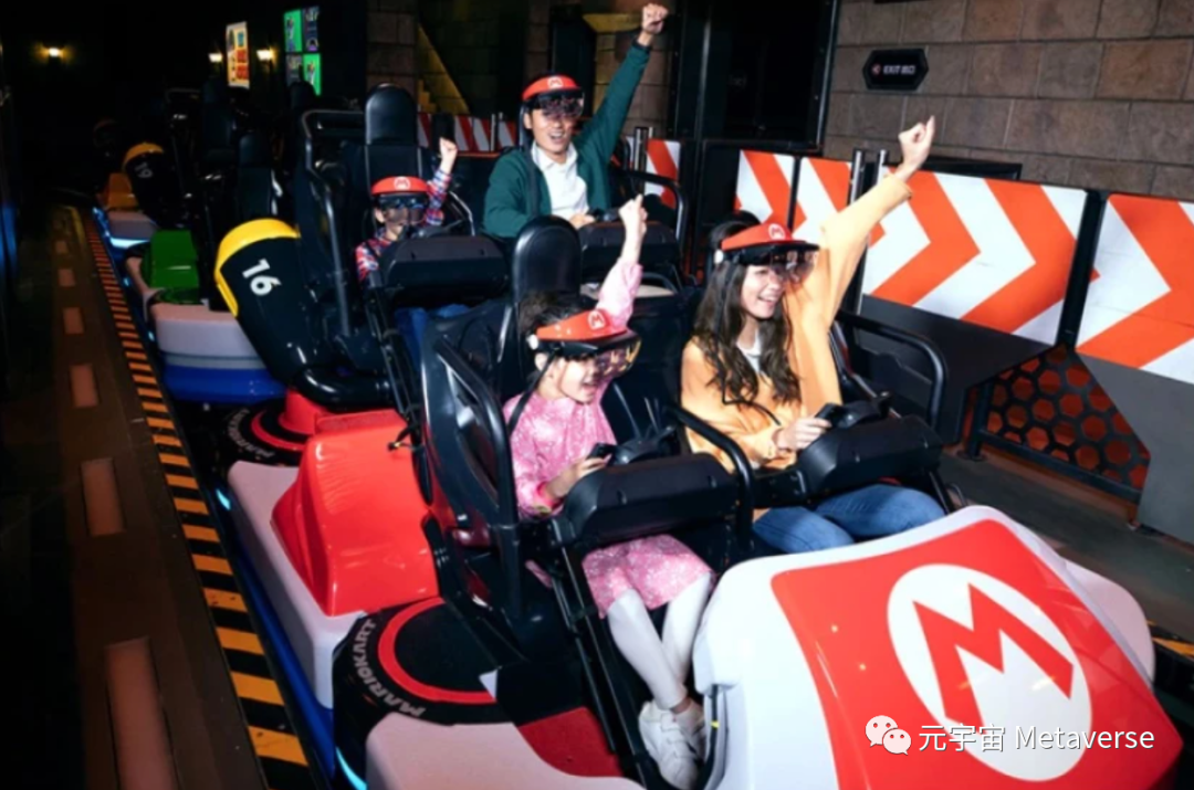 But the concept that we’ll wake up and plug into a virtual world for all of our daily interactions is a bit dystopian, likely far off and will probably never be a reality unless climate change forces it to be. More likely it is something akin to the Disneyland model, where entertainment, technology, architecture and more come together in spaces that blur technological lines.“There’s the ‘Ready Player One’ version of a metaverse, where we all live and work and our lives are totally digital. I don’t think that’s ultimately where this is going, to a point where we’re not in this physical world,” says Sinha. “I don’t think there’s any evidence to suggest that people actually like doing that.”Guests on a “Mario Kart"-inspired ride at Universal Studios Japan, which utilizes augmented reality techniques.(Universal Studios Japan)“However,” she continues, “if you look at the companies that are excelling in the metaverse, of course they would want to frame the metaverse as a future where everyone is going to live their entire lives in that company’s world. That’s the story you’re going to go out and pitch, but the reality, if you zoom back, is that the metaverse is about taking the separation of the physical and digital and combining them.”