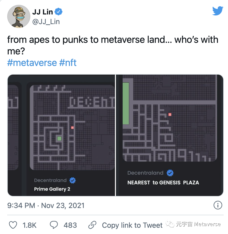 據外媒報導,林俊杰11月23日在推特上貼出他看中的Decentraland虛擬世界,并號召網友“有沒有人一起?”,引起較熱互動。
