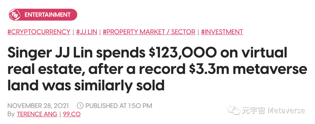 新加坡歌手、詞曲作者、唱片制作人、演員林俊杰(JJ Lin)在加密貨幣領域市場Decentraland購買了三塊虛擬土地,在這里虛擬房地產可以買賣,用戶可以登錄并在“元宇宙”中閑逛。
