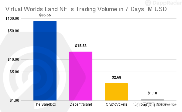 是的,令人瞠目結舌的交易規模。人們對元宇宙領域(如虛擬土地和虛擬房地產)的興趣正在大行其道。虛擬土地需求猛增,元宇宙炒房真“熱”起來了。一周內(11月22日-11月28日)虛擬土地銷售額收入超過 1 億美元,元宇宙似乎變得有利可圖的樣子。請切記,元宇宙概念不是單獨的一個平臺,就像Facebook更名Meta的舉動只是元宇宙的"冰山一角",元宇宙已被推向了主流,它涉及的板塊和領域很多而且正在急速增長。虛擬土地就是元宇宙中的地產。每一塊地都被賦予了獨一無二且不可復制的非同質化dai幣(NFT),并以此來區分每個地塊和每筆交易。土地供應商和用戶可以在平臺的一級/二級市場進行購買/出售,并將虛擬房產用于住宅或商業。(元宇宙:3D線上虛擬平臺,人們可以在上面玩游戲、工作、以及交易加密貨幣等)(加密貨幣:數字貨bi或虛擬貨幣的一種,就相當于虛擬世界的“錢”)賣家-土地供應商(就是游戲開發商。如Decntraland、The Sandbox等)。買家-加密貨幣企業、明星、散戶(如Metaverse Group虛擬地產公司,Token.Com虛擬貨幣及元宇宙地產公司,奢侈品牌LV,Gucci,Burberry,Adidas等。)據DappRadar的銷售數據來看,一周內,四個元宇宙項目在虛擬土地銷售額總計收入1.06億美元。主要為The Sandbox、Decentraland、CryptoVoxels和Somnium Space平臺的銷售量激增,大約吸引了6000名交易者。7天內登陸NFT交易量(數據來自DappRadar)其中,The Sandbox的總銷售額最高(8656萬美元)與The Sandbox最接近的競爭對手是Decentraland(1553萬美元)。而與競爭對手相比,CryptoVoxels (268萬美元)和 Somnium Space (110萬美元)的交易和交易者相對較少。11月30日,Sandbox的一塊虛擬土地以430萬美元的價格售出,創下了元宇宙虛擬土地交易新記錄,打破了之前“跑贏曼哈頓房價”的Decentraland 虛擬土地銷售記錄。![]()