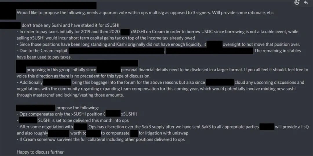 我們已經收到了關于Sushiswap濫用職權的多項指控文件,我們相信你現在已經知道這一切了。每個故事都有兩面性(或更多),在我們發布任何信息之前,我們想聽聽你對事件的看法。”