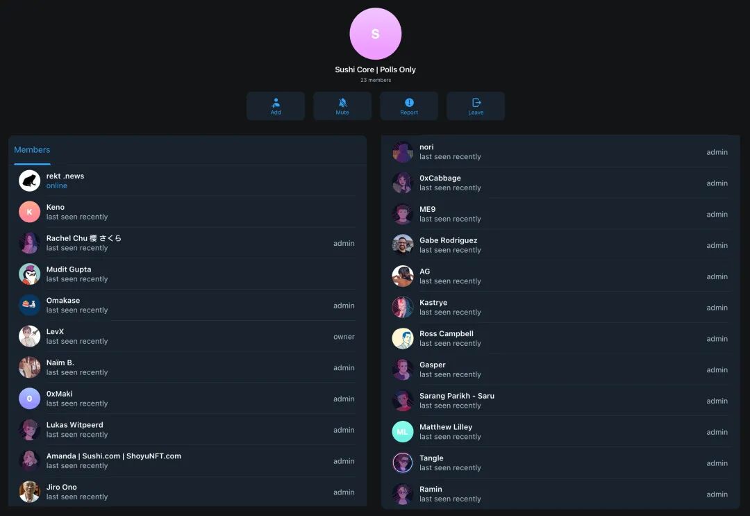 Rekt.news獲得了Sushi Core聊天的訪問權限(當時設置為公開訪問),在那里我們看到了Sushi團隊成員進行的內部民意調查的結果。