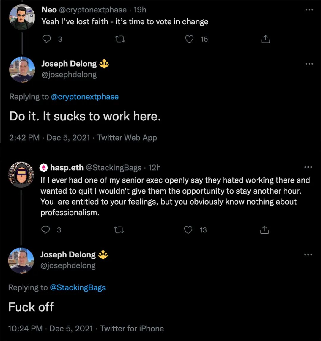 泄露的文件數量表明,自Delong擔任首席技術官以來,Sushi團隊成員對其存在諸多不滿。