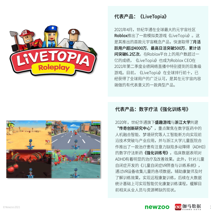 在元宇宙在今年下半年變得炙手可熱之前,世紀華通早已于2012年4月推出了首款元宇宙概念游戲《LiveTopia》。據悉,這款游戲在全球最大的元宇宙社區Roblox上架,月活躍用戶超過4000萬,最高日活突破500萬,累計訪問突破6.2億次。除去對元宇宙游戲的布局外,2020年,世界華通旗下盛趣游戲還與浙江大學共建“傳奇創新研究中心”,共同合作數字醫藥中的人機融合智能、夢境研究等人工智能新方向,實現前沿科技突破和產業應用。