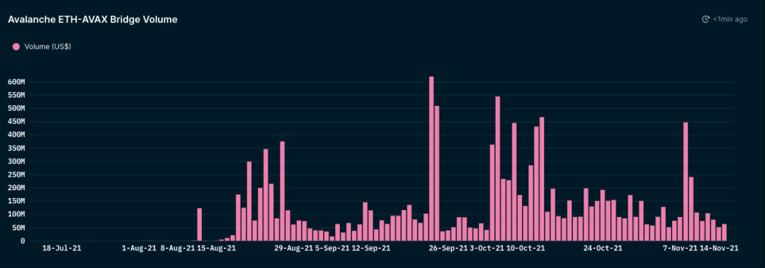 Avalanche 橋接交易量(僅限 Eth 到 Avax)
