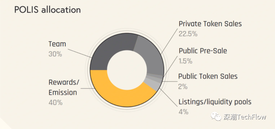 注意,這不僅僅是少數游戲的問題,而是整個gamefi領域的問題。目前,平均分配給團隊投資者和私募投資者的份額分別是20.3%和13.2%,公開出售的所有權是9.17%(基于3款游戲的數據Axie Infinity、Star Atlas和Splinterlands)。可以從數據收集到的游戲,在一些極端情況下像star atlas, POLIS(他們的治理token)的公募token只占有2%的總POLIS的分配額度,而私募額度有22.5%,因此留下了許多問題,比如公共治理權,民主性和土地分配問題。