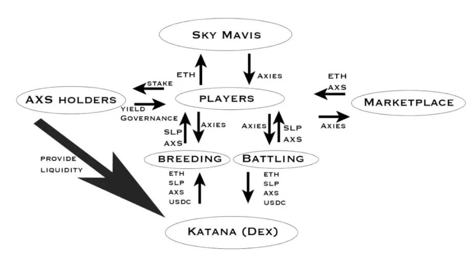 Axie Infinity引領了這一潮流。Axie用戶通過投資購買 Axie NFTs 和 $AXS 原生代幣開始游戲。在那里,他們可以通過游戲賺取$SLP,因為賺到的代幣可以用來交換其他加密資產或法幣。