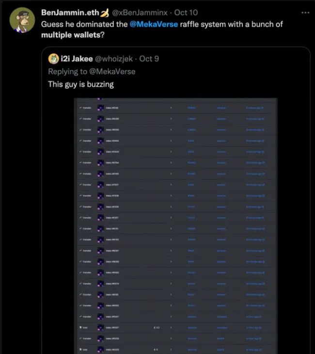 下圖展示了mekaverse抽獎中的一次作弊結果。